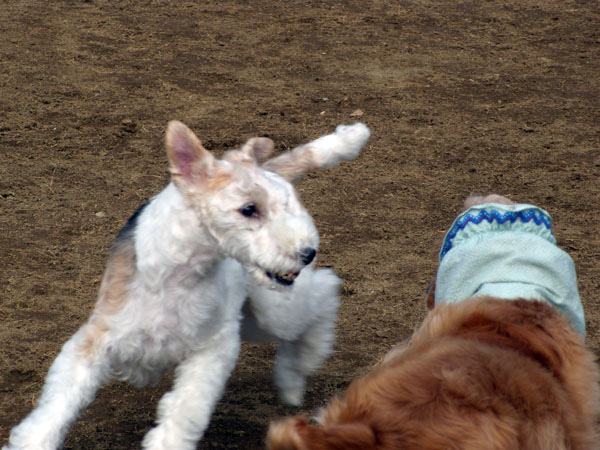 入れ替わりにたくさんのワンちゃんと人にビートは思いっきり走る事ができません