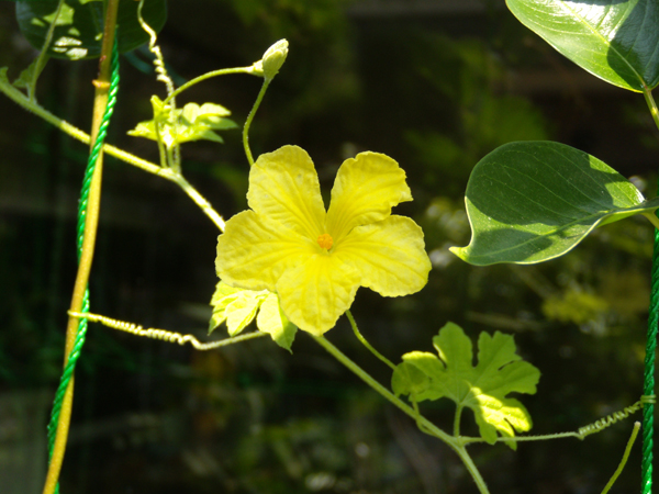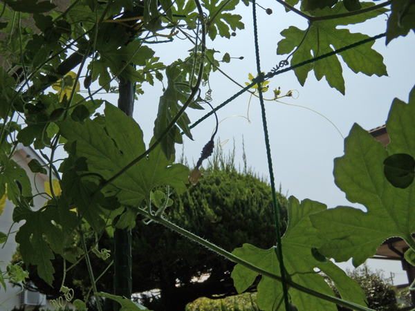初、ゴーヤの実を持った雌花
