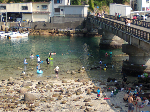 柏島にかかる橋の下で海水浴したり、バーベキューしたり、ダイビング