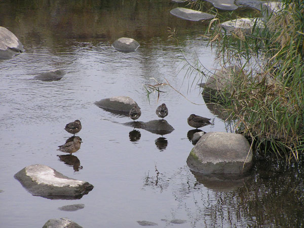 散歩の河川敷では鴨さんがじーとしてます。