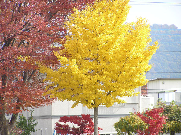そうだ!裏山も色とりどりになったんだ。紅葉狩りにいかなくても見れる