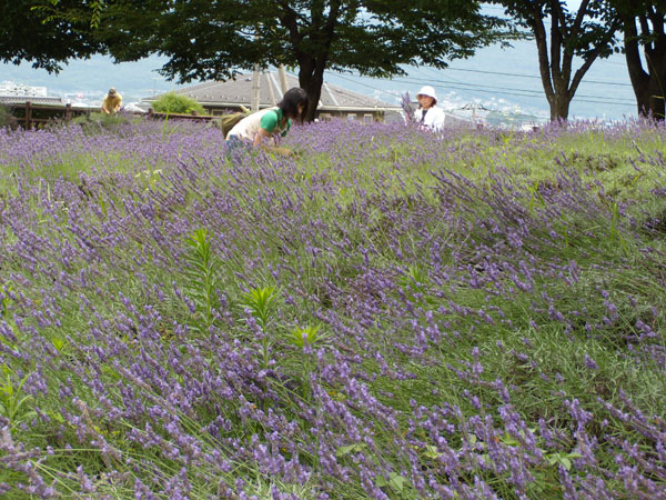 中央高速双葉サービスエリアにあるハーブガーデンのラベンダー穂刈り