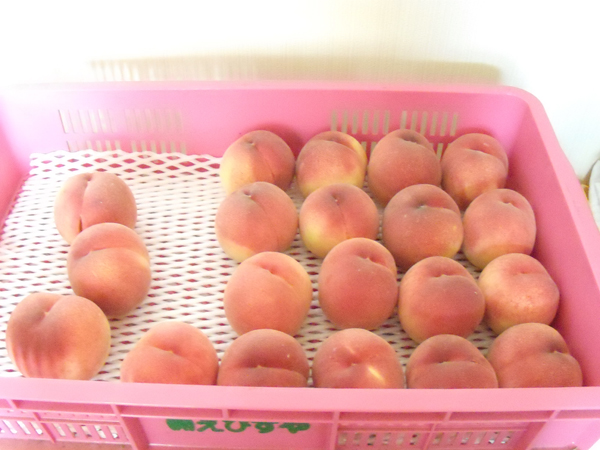 今日、お隣さんから桃をいただいた。