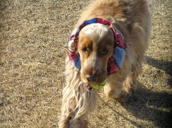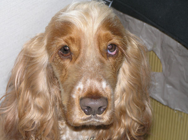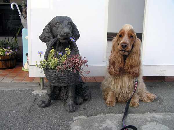 入り口に座っているワンちゃん?もしかしてE・コッカ?