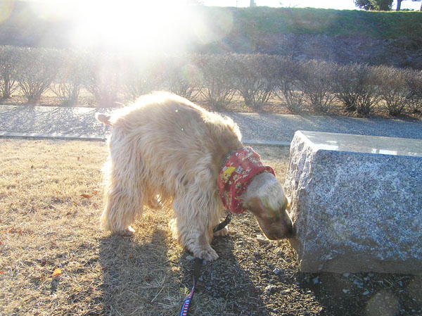 お散歩に連れて行ってもらうと、立て続けに○ンチをしたくなっちゃった。