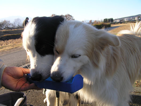 仲良く飲んでます。ここにB氏が水を飲みたかったら入れてもらえるんですよ。