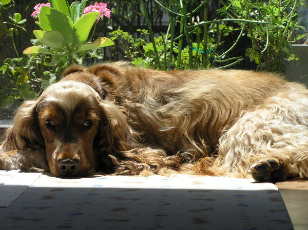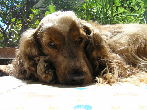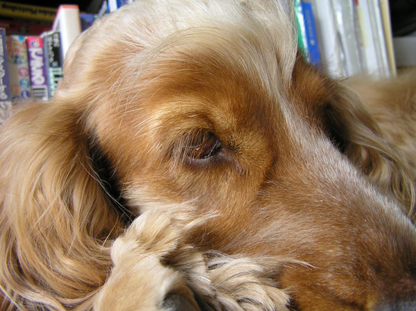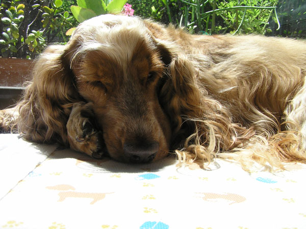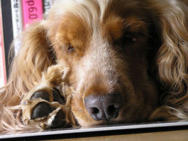 どうみても散歩に連れて行けと催促しながら寝ているようにしかみえない。