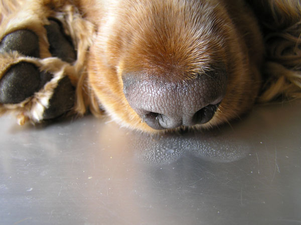 ひんやり板の上で寝ているので鼻息が板の上で水滴となってます(笑)