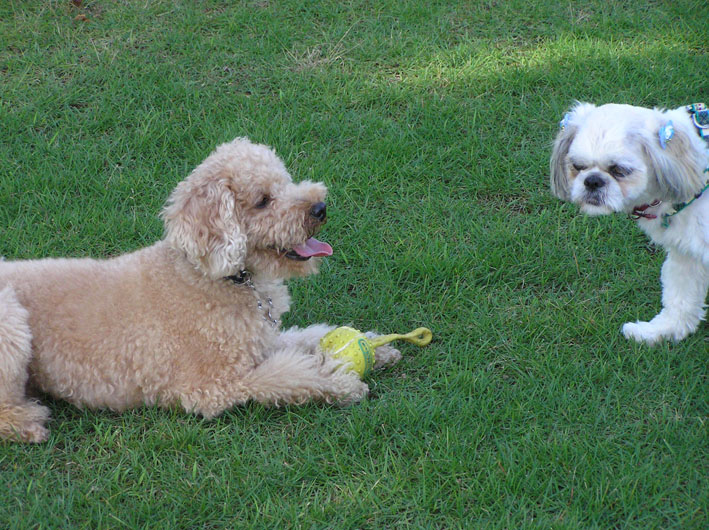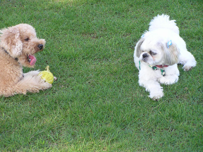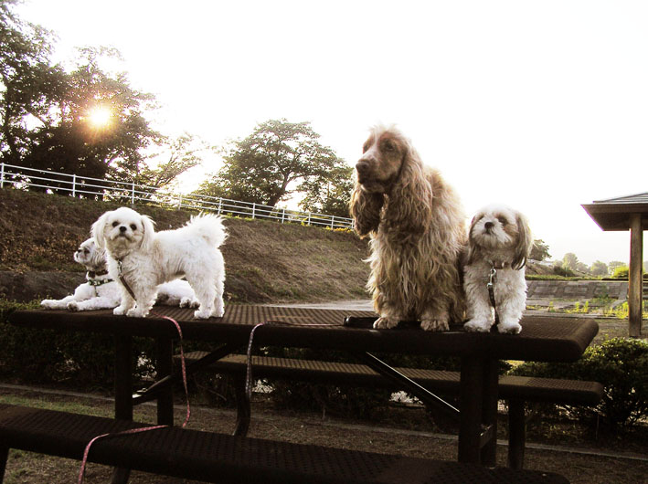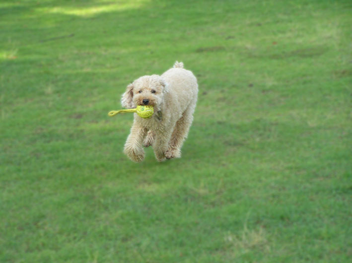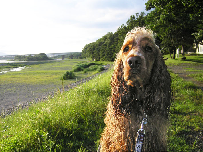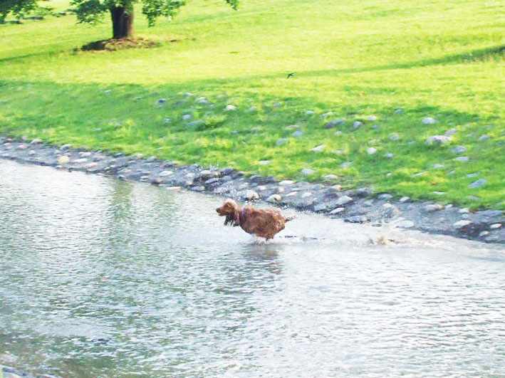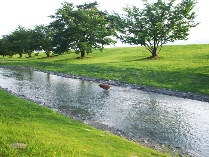 芝生公園で散歩し、ちょっとたってから小川でクールダウンさせてあげ、お日様の元、走らせ乾かしておりました。