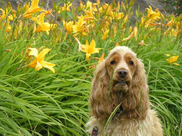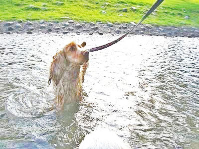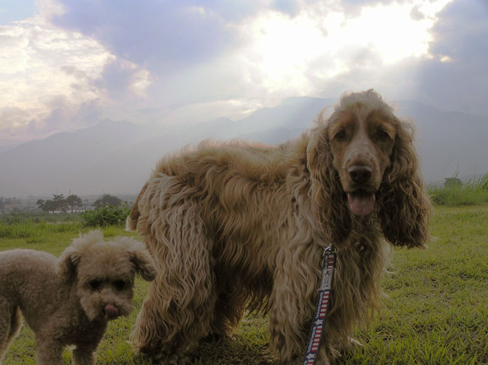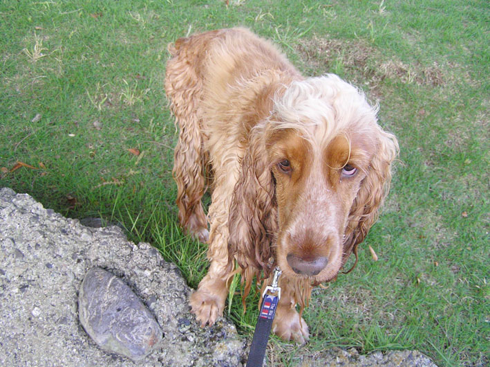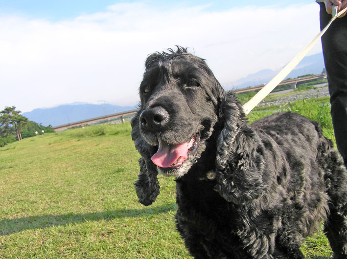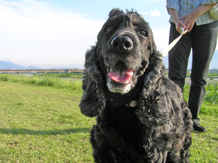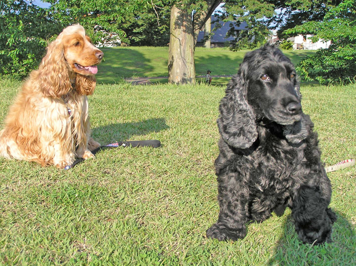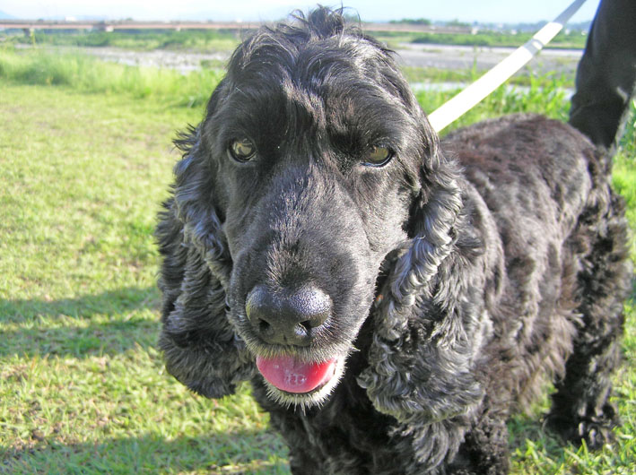 振り返ってみると黒いワンコ?黒くてなんの犬種かわからなかったのですがシルエットはまさしくコッカ!思わず、『イングリッシュですか?』と、大きい声だして聞いてしまいました。(笑)