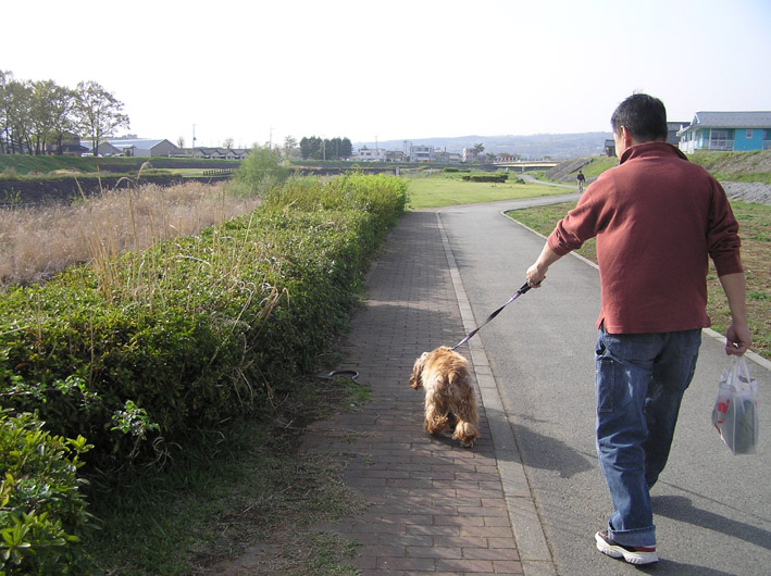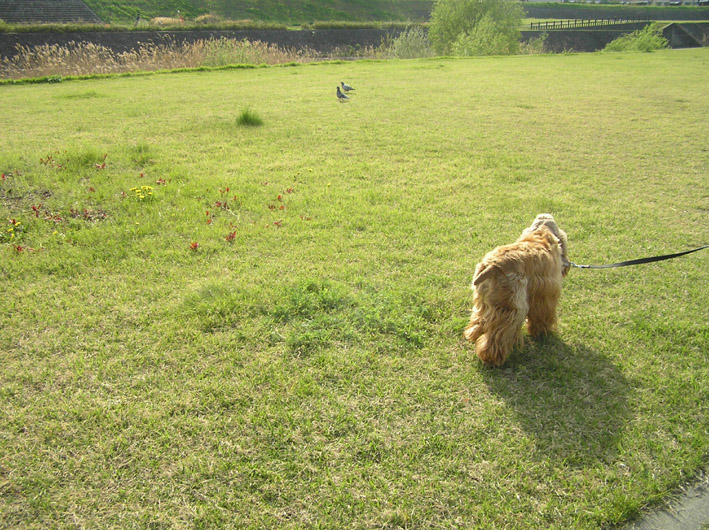 日曜出勤だったパパは昨日お休みをいただき、河川敷へ一緒に散歩に出かけました。