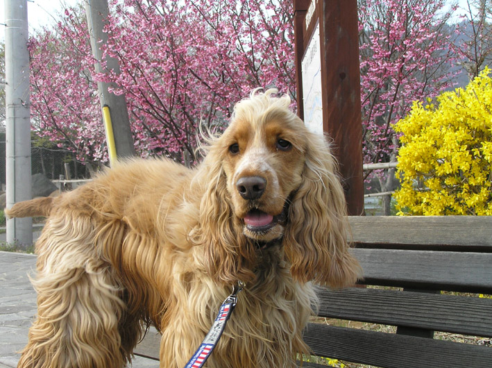 そして、もうひとつ良い事が.....。お寺を散策しているとB氏の前に立ち止まった女性がいました。そして、E・コッカですか?と尋ねられお話すると同じ色のE・コッカと暮らしていると言うじゃありませんか!思わず、お住まいは?と尋ねると意外に意外、近くだったのです。今度お会いするために携帯番号を交換し帰ってきました。B氏!やっと、同じ犬種、そして同じカラーの子に会えるよ!楽しみだね。