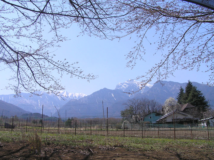 神代桜がある場所から2Kmほど山を登ったほうに桜並木があると言うので行ってみましたが、まだ1分咲きくらいで残念!開けた高原のような所で別荘の分譲地があちこちにあり、景色も最高です。