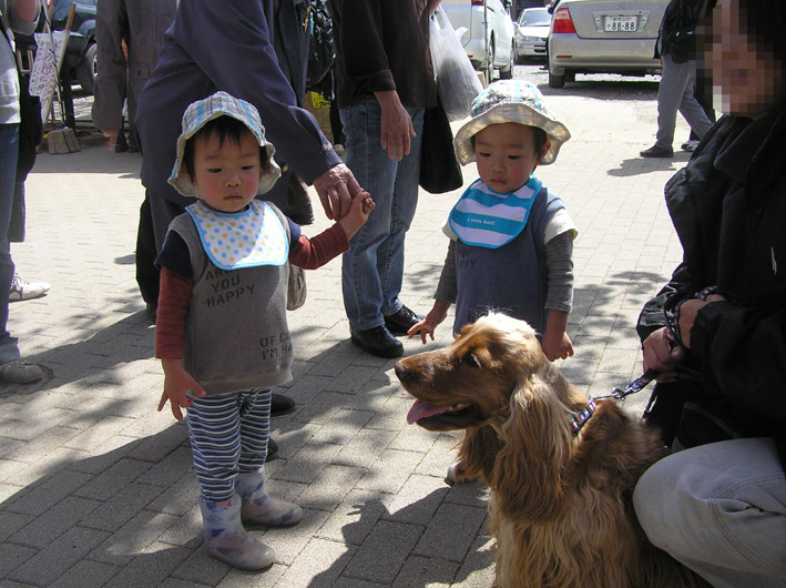 かわいい双子ちゃんがB氏にナデナデしてくれました。ありがと!