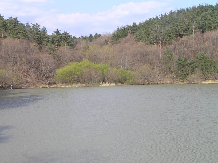 池があります。バス釣りをしている人がチラホラ