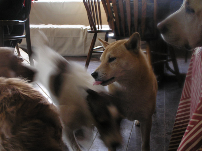 B氏はツナ君、トニック君、テト君と遊ばせてもらいました。女の子+ブレンド君は寝ていてB氏に全然興味なし(笑)ここでも、女の子にもてず、男に好かれているB氏で特にツナ君がとてもよく遊んでくれ、もう少し広ければ走り回って遊びそうな雰囲気でしたので早くランができればいいな!なんてまたまた思ってしまいました。