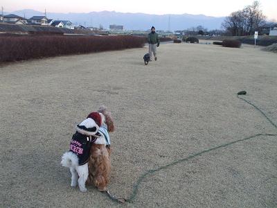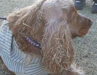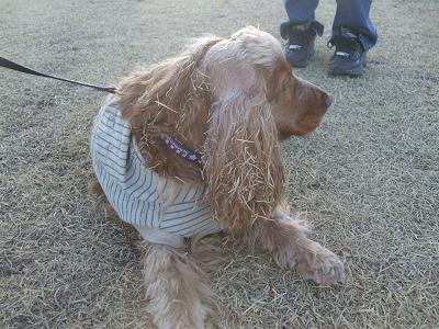 ビートの毛にトッピングされた枯れ草は主体のビートの毛より枯れ草の方が多い感じ。ブルブルしても走りまわっても、はたいてあげてもとれず、車に乗り込んだ車の中も馬小屋状態。家でブラシをかけたがとれず、シャンプーとあいなった。