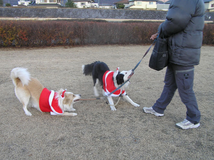 散歩では、チェル君、ヴァン君に会いました。実は大晦日にも会っているのでちょっと変ですが大晦日ではよい年をと、お別れし、元旦ではあけおめと挨拶し、