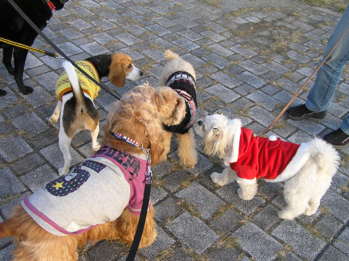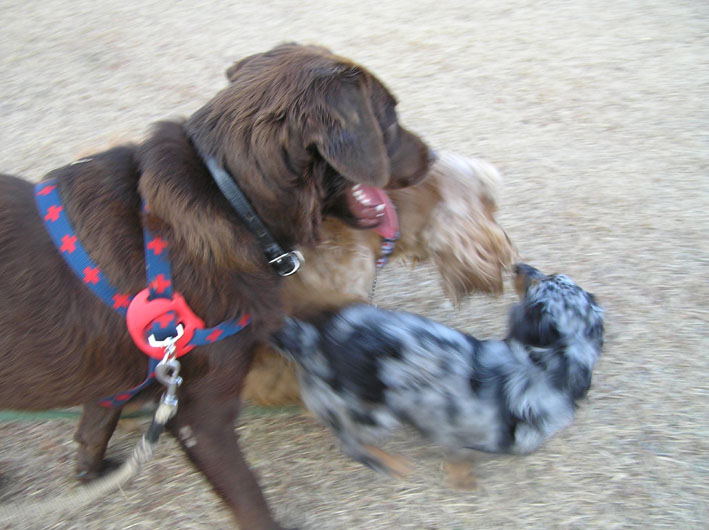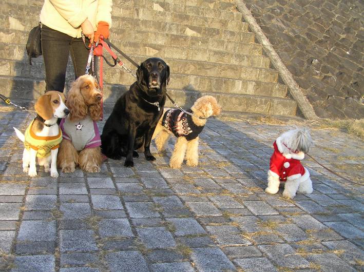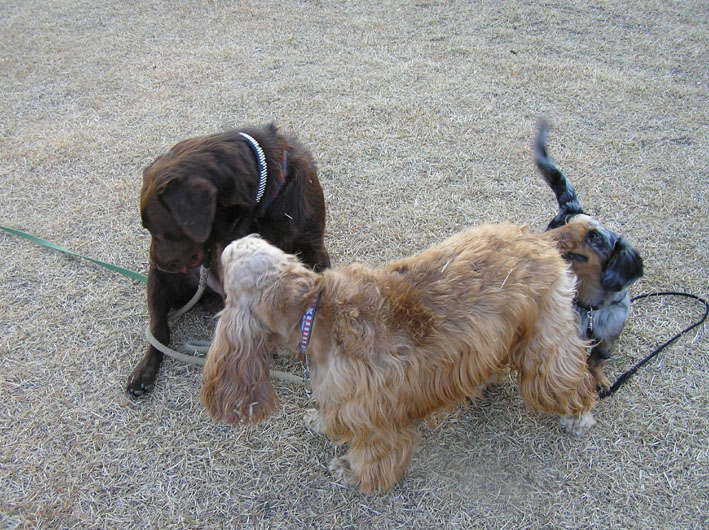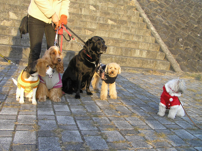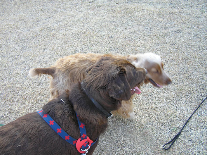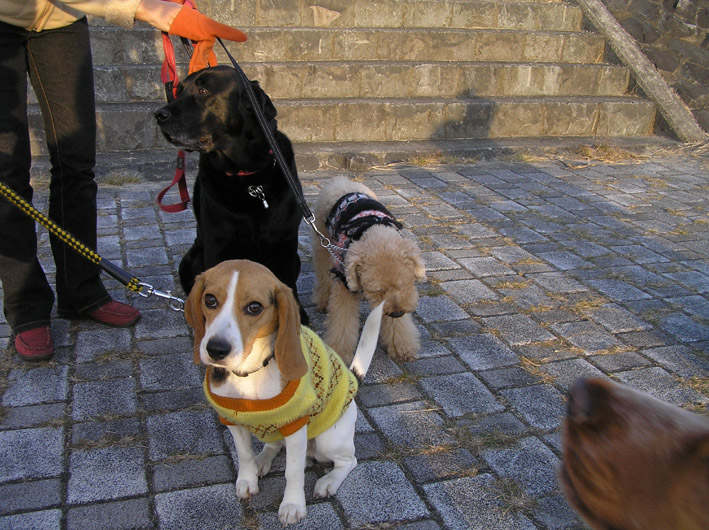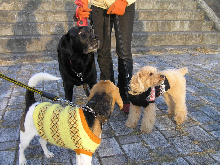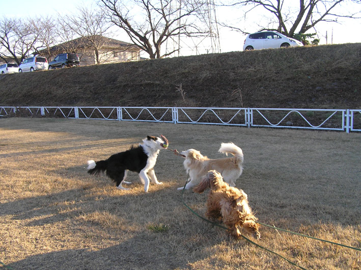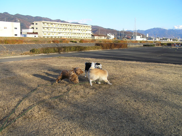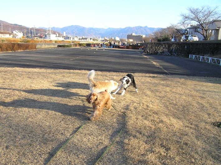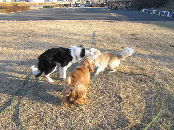 チャル君とビートはロングリードにつないでヴァン君はノーリード。
