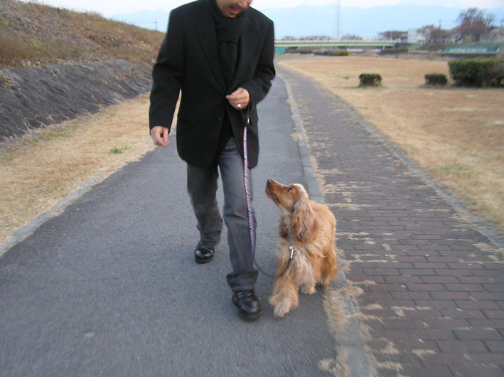 先週の日曜もパパのアイコンタクトで横について歩いていたが今回も。