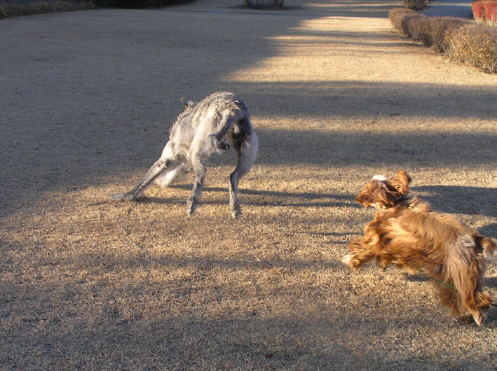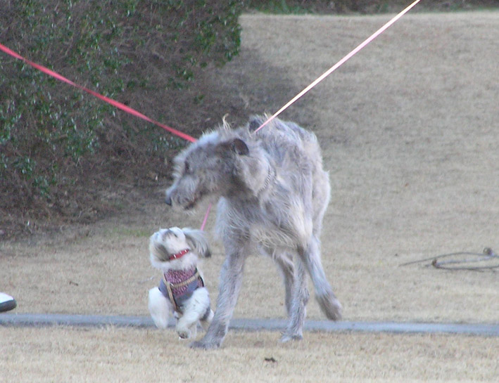なんと、 アイリッシュ・ウルフ・ハウンドのラウラちゃん(1才8ヶ月の女の子)と一緒だったからです。