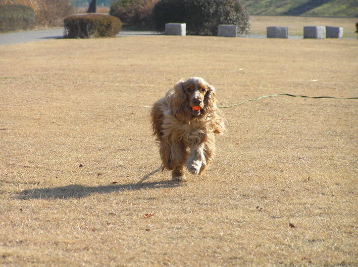 そこで投げて私も一緒に追いかけてみると走る走る僕がとってやるとばかりにボールをとりに行く。