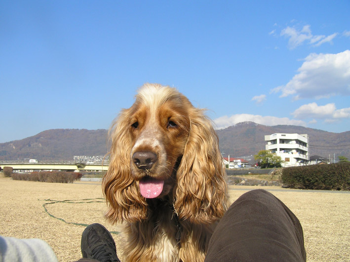 昨日散歩で河川敷に行って大ちゃん、チャーミー君に会いました。でも、風がビューと強いし寒いです。