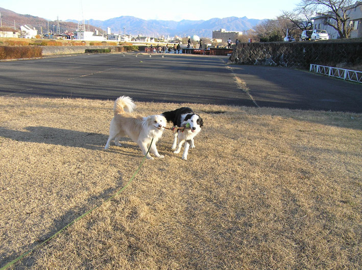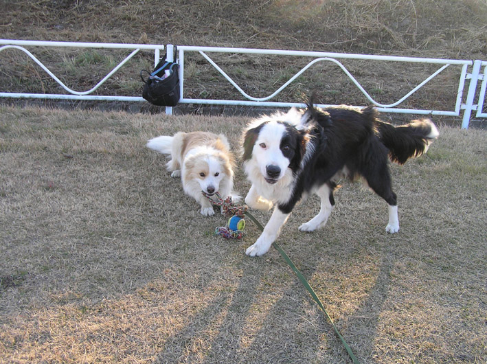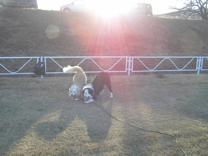 一周してくるのを待とうとビートとボールで遊んでいましたが、私が寒くてギブアップ。先に帰らせてもらいました。