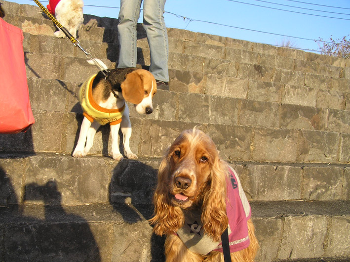 断念。河川敷の階段は降りられず、スロープ的にできている坂から降りるものの帰りは階段で登れると言うので階段を登れば手足を使い4足歩行。それでもふらつくのでベルトを押さえ腰を固定してあげれば余計な事するな!と、手で追いやられながらも車にのせました。ビートは近くにいたチャイ君ママに持っていてもらっての作業でしたのですぐに戻るとリードは、ばあちゃんが持っていました。ばあちゃんは悪いと思いリードを持ったのでしょうが、これまたビートの引っ張る力を知らなさすぎ!絶対に引っ張られたら転ぶに決まっている。今回、幸いに穏やかにリードにつながっていたみたいなのが不思議なくらいだった。