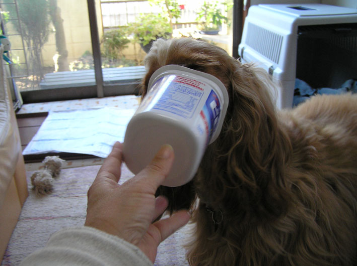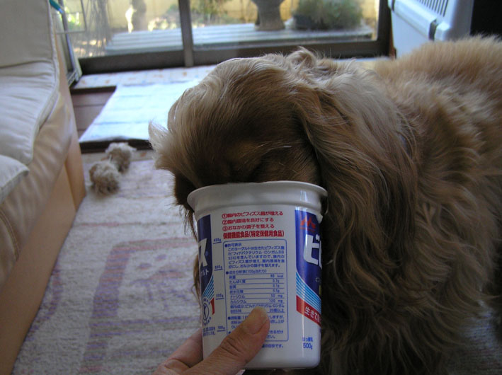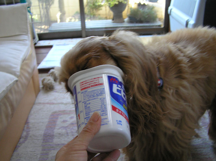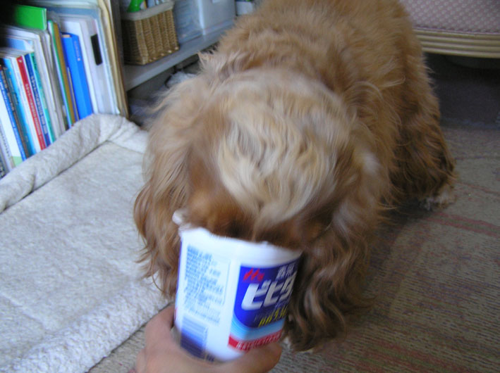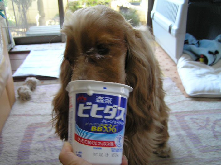 いつもは朝、ばあちゃんが少しヨーグルトをあげるのですが