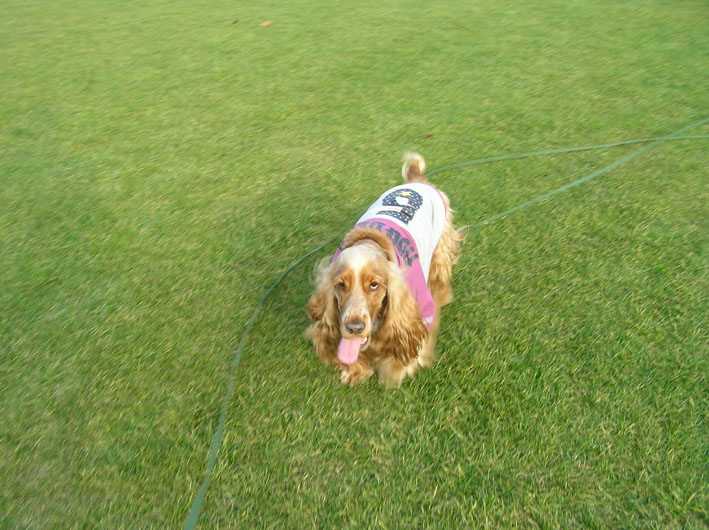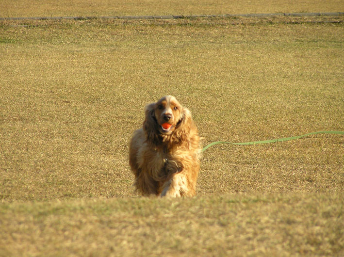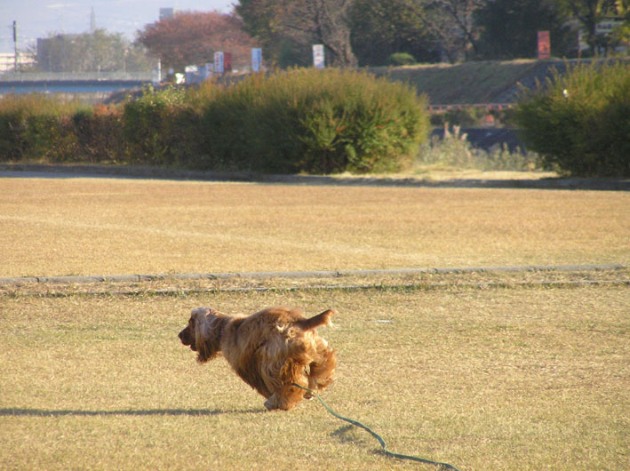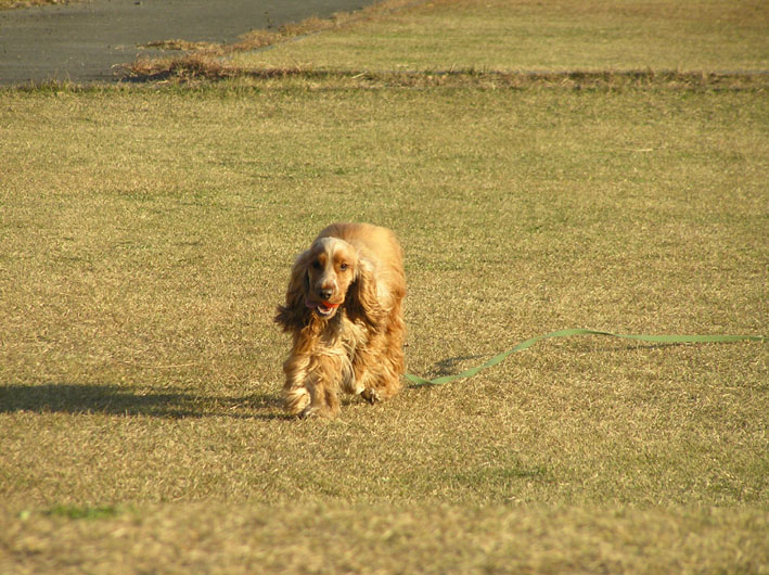 ビートはパパが来たよと言うとあっちこっち遠くを探しまくります。でも、意外に近くまで寄ってきていたのを知り、走りこんでご挨拶。(リードを離してあげた)