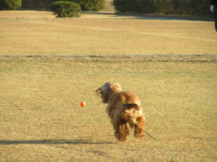 そこで、ロングリードでボール遊び。