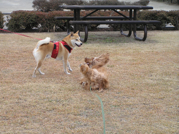 ナナちゃん、ジョン太君とはまだ数えるくらいしかお会いしていないが、ビートはちゃんと覚えていてすぐに遊びモード。(ママはジョン太君を忘れていましたすみません)
