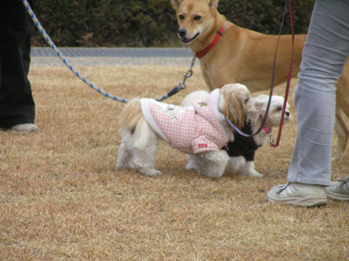 急に向きをかえるワンコ達。