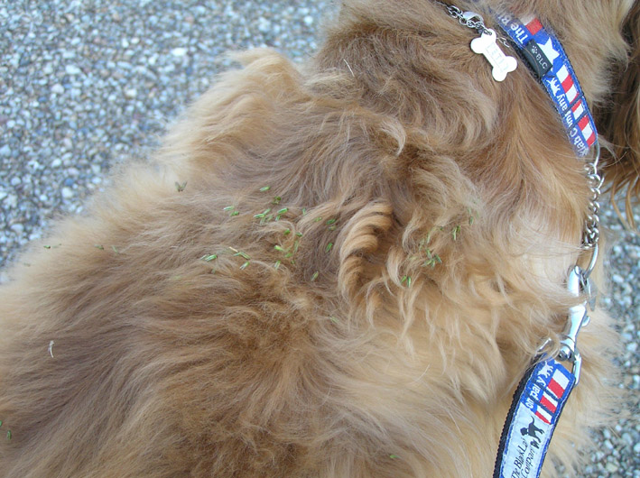 散歩してすぐ行ったものだから草や種がいっぱいついていました。