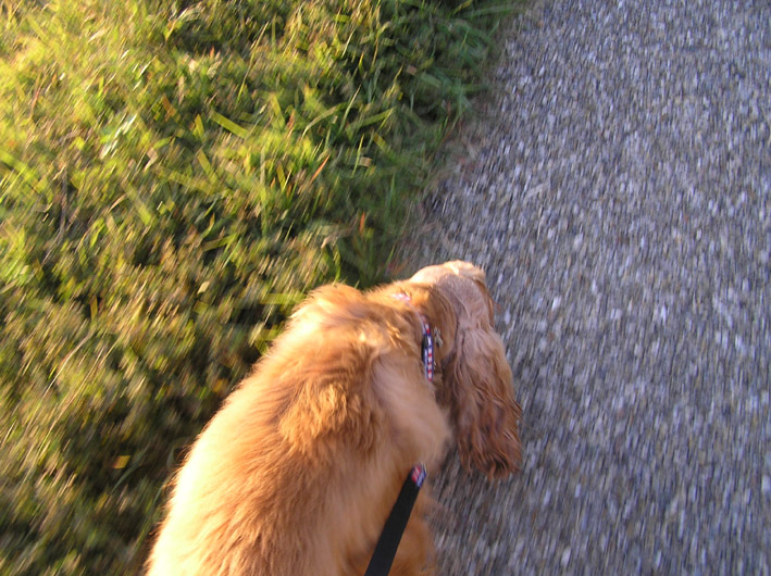 なんだ一時か!クンクンしながら歩いている。(ガク)