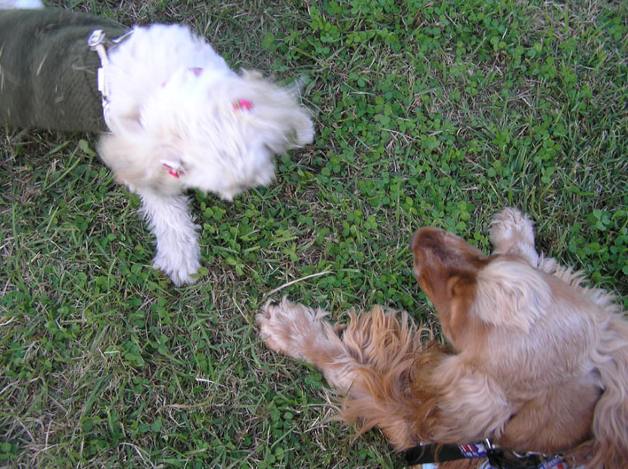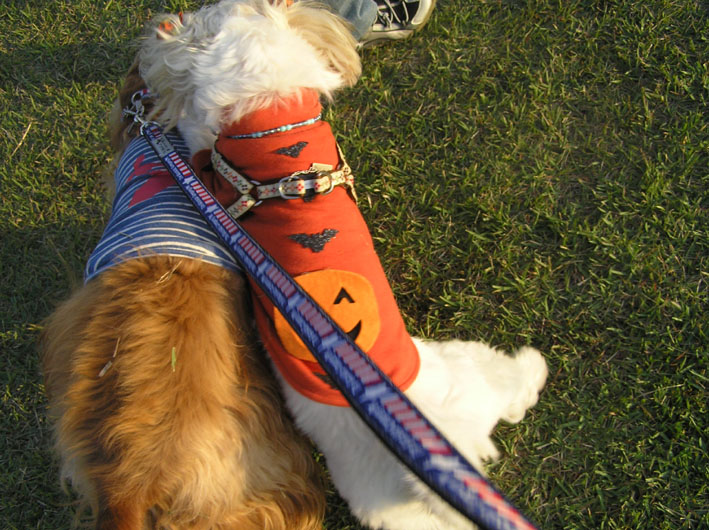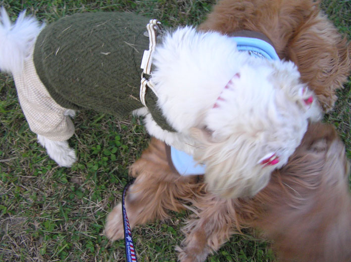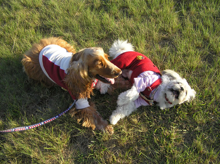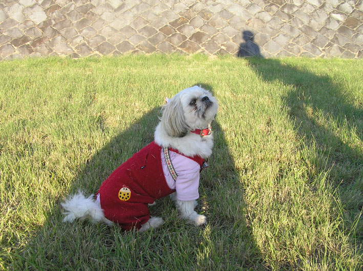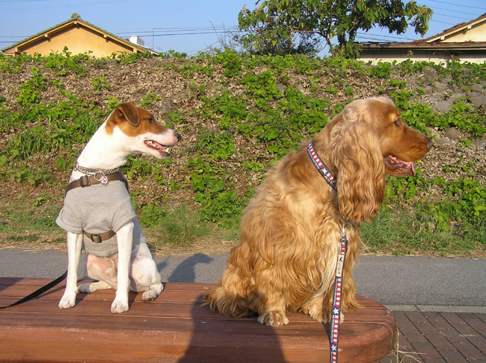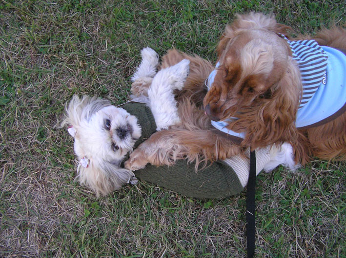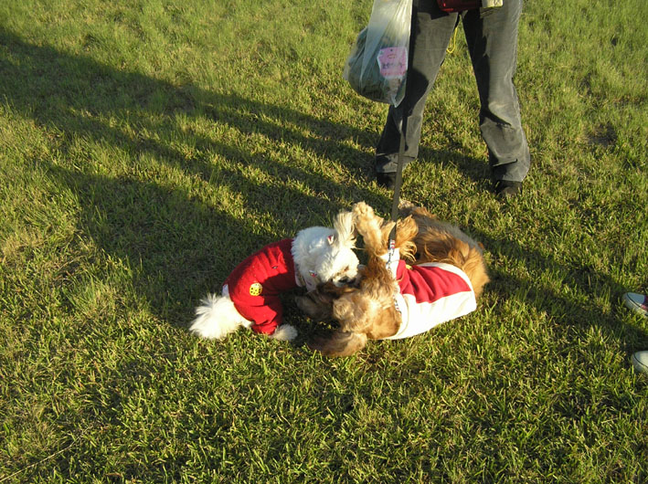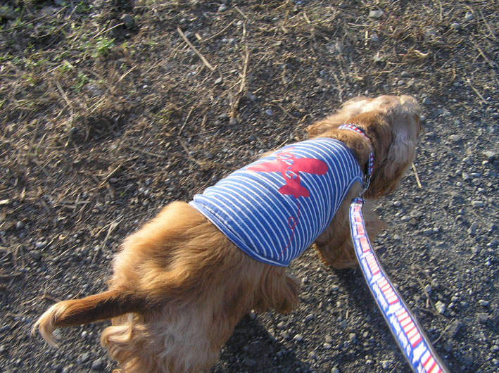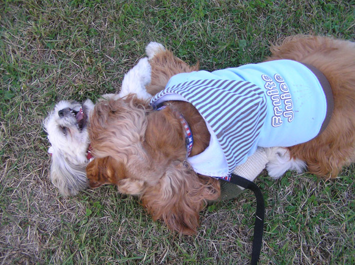 あらあら、大ちゃんの服が枯れ草だらけ。ビートと寝転んで遊んでいたものだからかわいい洋服が......(ゴメン)