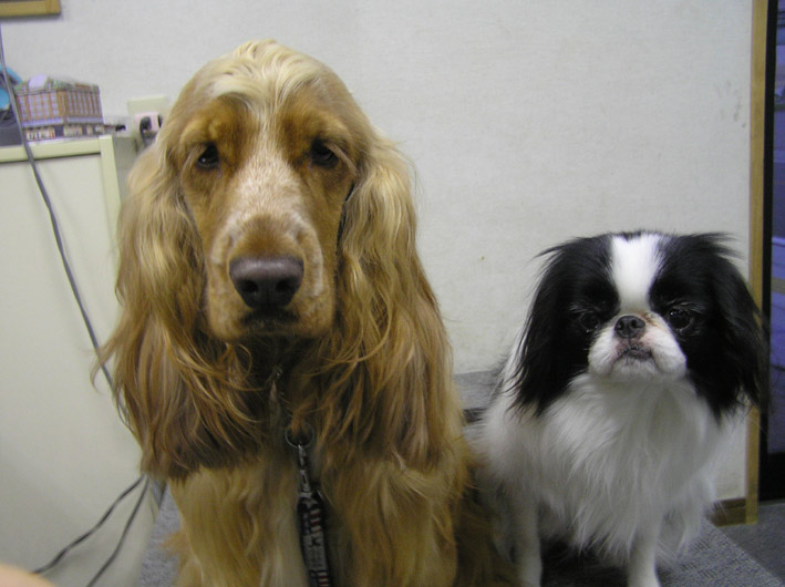 出来あがりに看板犬のライちゃん(狆)と写真を撮ってこのお顔。