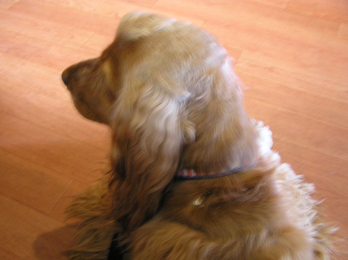 どうもお尻周りのボアボアが気になり始め、そうだ、肛門まわりもカットしておかなくては。足元も枯れ草や種が入りこまないようにカットしよう。おデブにみえるこのふわふわ毛はもしかしてアンダーコート?そう思えば、この頃、ビートにしては毛が抜けるなあ〜。アンダーコートの処理もしなくては。となんだか本格的になってきた。