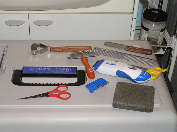ざっと使った道具。犬用バリカンがほしいー。けど高い。(グシュ)