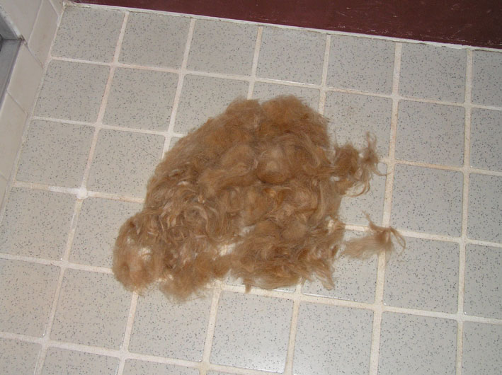 とれた毛、カットした毛はこのぐらい。やはり、10/8にやったからそんなに大量じゃなかったな。