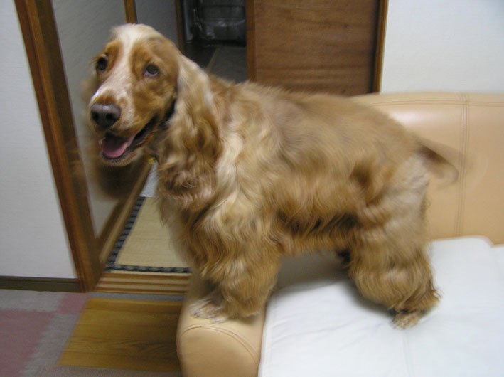 ウーと吠え、しっぽがお尻の間に入りこみ、腰が抜けたように動かなくなってしまいました。相当怖かったのでしょう。その後も腰がひけていたのでかかえる事も出来ず、前足の方だけでも抱きかかえて撫でてあげおかしで気をそらしてあげようと差出したのですが匂いもかがず、食べようともしません。この場を早く立ち退いてあげた方がよさそうだと思い腰をかがめて動かないビートをやっとの思いでだっこして車に乗り込みました。車の中でも隅の方で小さくなっていましたが、家に近づいて来るうちにやっともとのビートにもどりました。もう少し場所を考えてあげればよかったママの失敗です。ビートごめんね。