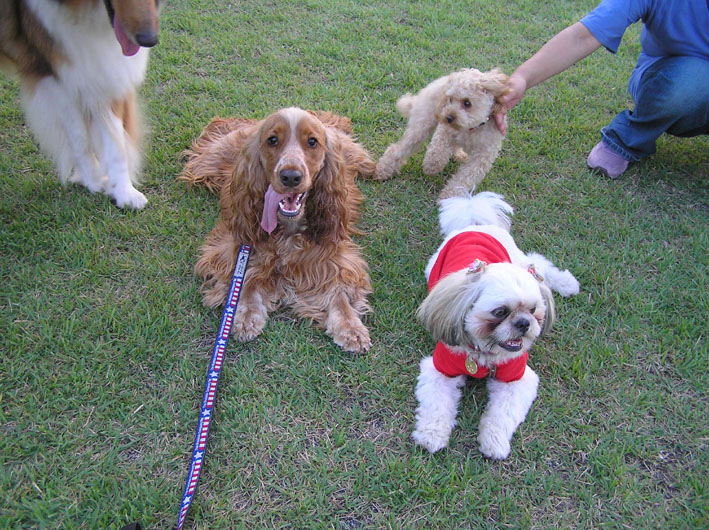 チャーミー君は集まっている中にはなかなか入れません。怖がってすぐママにだっこ要請。あたり前だよね。2kくらいの小さなワンコだもの。でも、いつもみんなの所へ来てくれます。ありがとう。