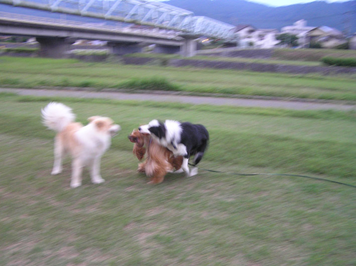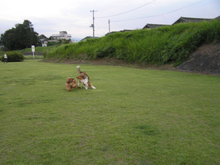 が、第二戦、しかけてくれた大吉君にその気になり追いかけまわして大吉君2、3回転連発、加減しろー。(怒)