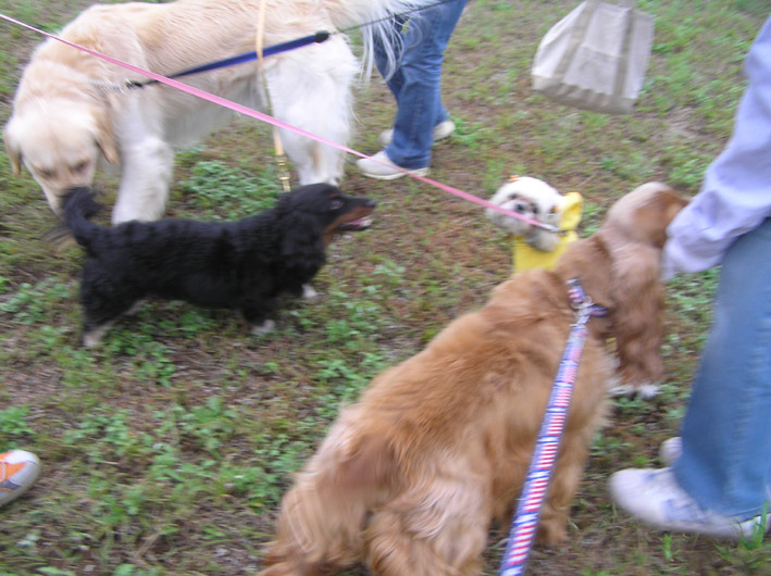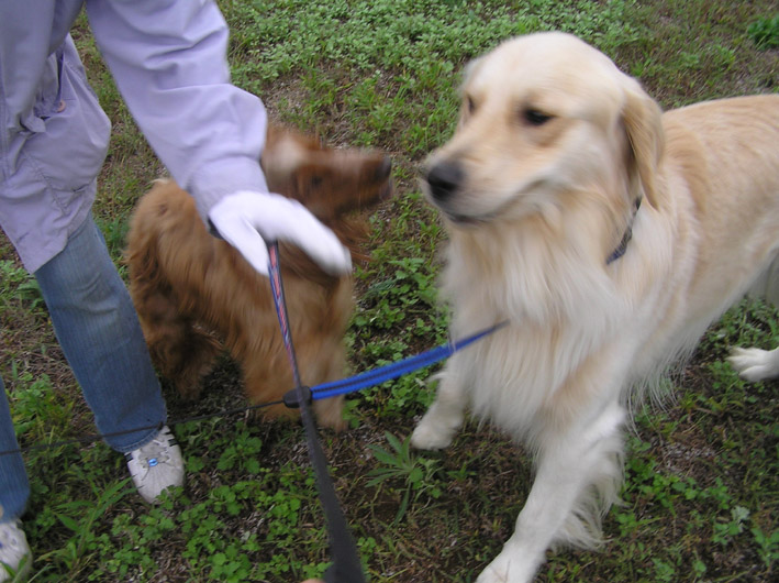 4ひき連れて来た時もあったそうですが散歩にならず、日替わりで1ぴきづつのお散歩にしたそうです。ビートにクンクンさられ、帰ってからビートの匂いがするのでみんなによってたかって攻撃をうけるんじゃないかとちょっと心配でしたがバンビちゃんの子ですからおとなしい事でしょう。