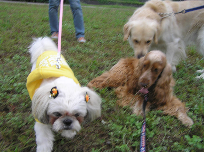 早くに散歩に出かけたにもかかわらず、みな思う事はいっしょなのかいつもお会いするワンコたちがゾロゾロ。ビートはうれしそうです。そしてママもうれしいです。やはりみんなに会って井戸端会議ならぬワンコ会議させていただく事がうれしいです。