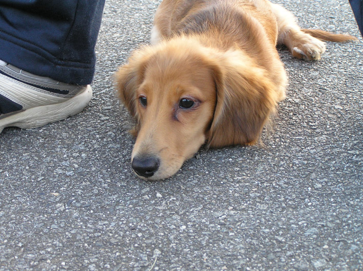 以前によくお散歩コースでお会いしていたミニチュアダックスのバンビちゃん。この頃お会いしないなあ〜と思っていたんですが先日、スーパーの前で偶然飼い主パパさんにお会いし、立ち話をしてしまいました。