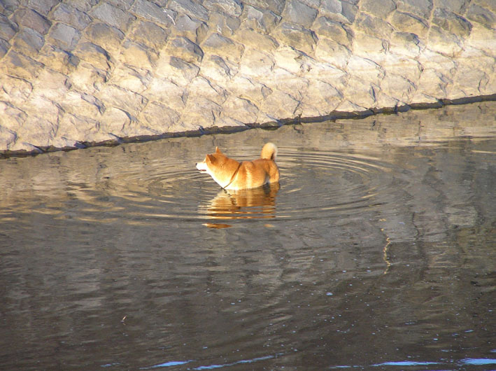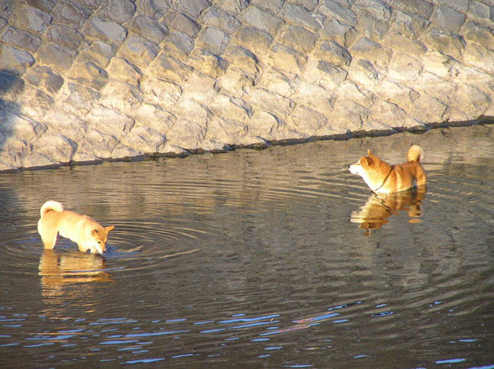 河川に入っているワンコも多くなりました。