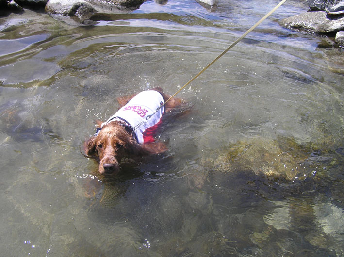 ビートも入れてあげたいけど帰ってからシャンプーをしないとちょっと臭くなるので禁止しています。でも、いつも川に方に行きたがります。