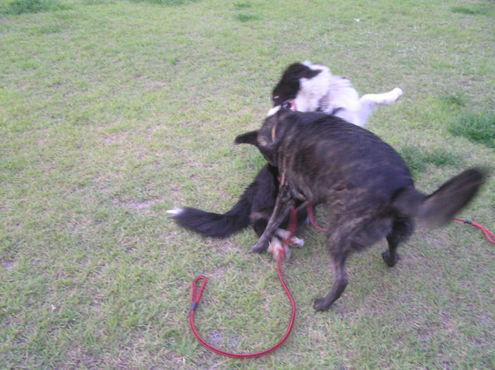 ルイ君が押さえ込みできた。相手はビートだけど。そしてルビーちゃんも一緒に押さえ込み?3びきいるとは思えない団子状態!